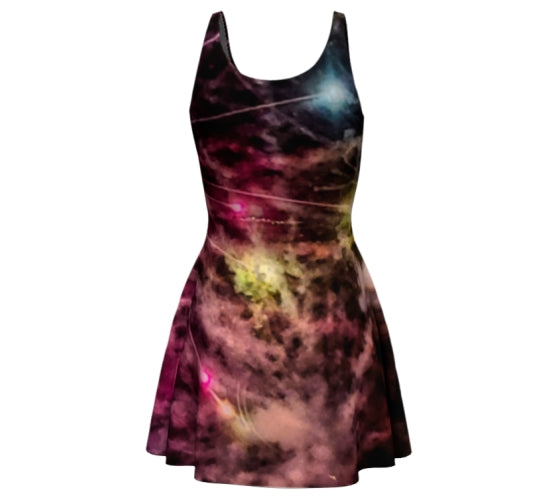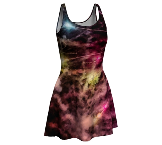 Featuring a fitted, body hugging top with a flared bottom skirt starting at the waist, this flared dress is ready to move with you from the office, to dinner, and on to a night on the town.